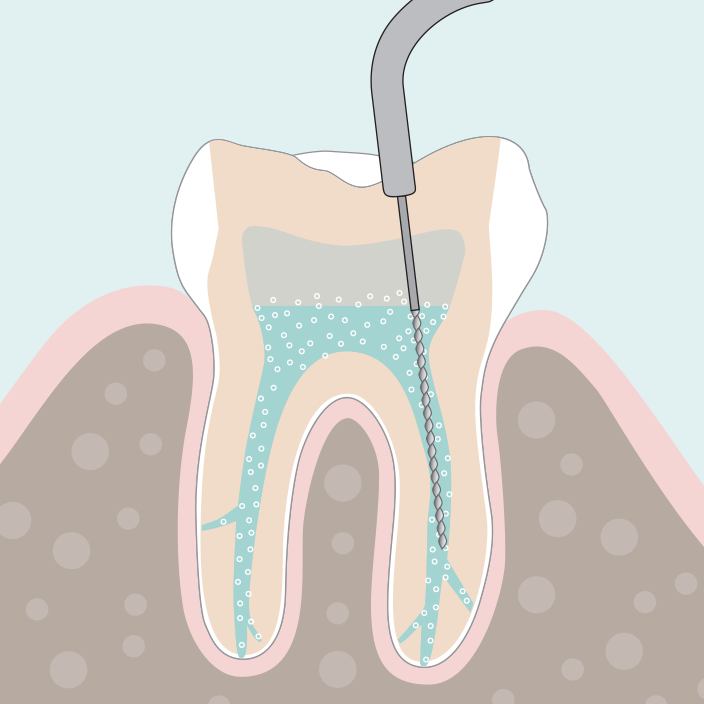 Im Anschluss an die Reinigung und Desinfektion der Wurzelkanäle erfolgt, je nach Grad der Entzündung, eine medikamentöse, antibakterielle Einlage oder die definitive, bakteriendichte Füllung und Versiegelung des Wurzelkanalsystems. Das Risiko einer erneuten Infektion wird so minimiert. Meistens braucht es zwei bis drei Sitzungen, bis alle Wurzelkanäle gereinigt und desinfiziert sind und die Entzündung komplett ausgeheilt ist. Bringen Sie also bitte etwas Geduld mit. Es lohnt sich!