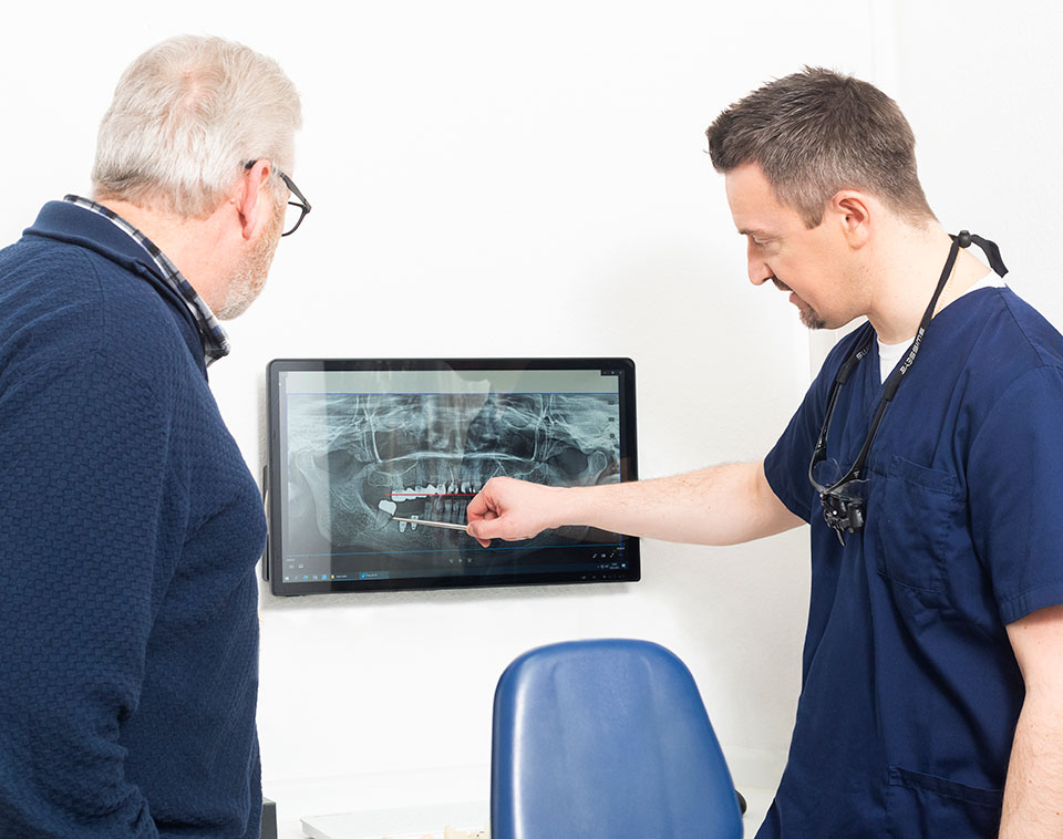 Im Laufe des Lebens geht schon mal der ein oder andere Zahn verloren und muss ersetzt werden. Hierfür empfehlen wir im Regelfall Implantate. Diese künstlichen Zahnwurzeln tragen den sichtbaren Zahnersatz, den wir ästhetisch unauffällig in die natürliche Zahnreihe eingliedern.