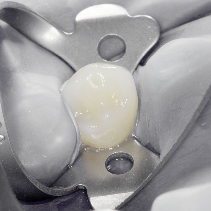 Der betroffene Zahn wird mit einem Gummituch (Kofferdam) isoliert, damit keine zusätzlichen Bakterien durch den Speichel in den Zahn eindringen können und Sie die feinen Instrumente oder die Desinfektionslösung nicht verschlucken können.