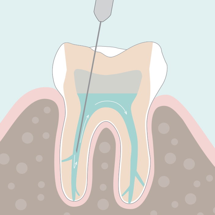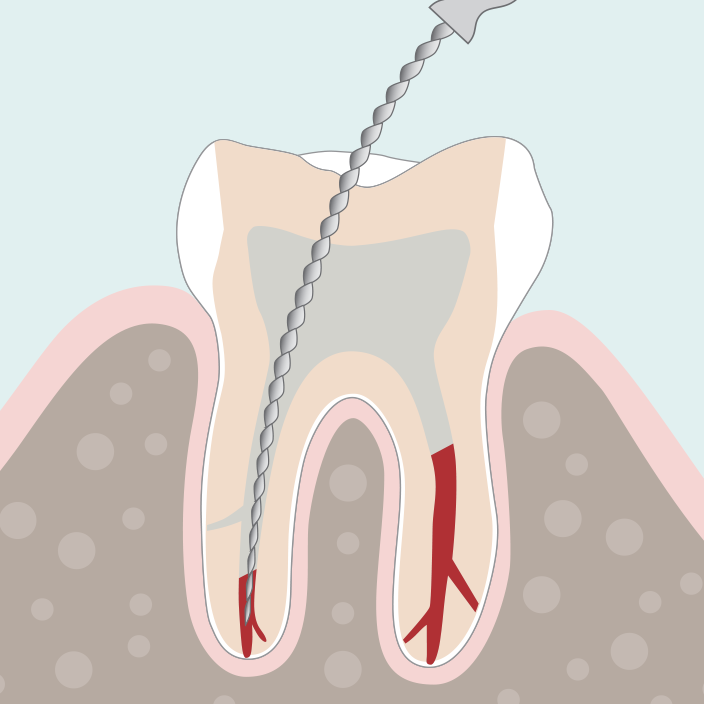 Im Anschluss an die Reinigung und Desinfektion der Wurzelkanäle erfolgt, je nach Grad der Entzündung, eine medikamentöse, antibakterielle Einlage oder die definitive, bakteriendichte Füllung und Versiegelung des Wurzelkanalsystems. Das Risiko einer erneuten Infektion wird so minimiert. Meistens braucht es zwei bis drei Sitzungen, bis alle Wurzelkanäle gereinigt und desinfiziert sind und die Entzündung komplett ausgeheilt ist. Bringen Sie also bitte etwas Geduld mit. Es lohnt sich!